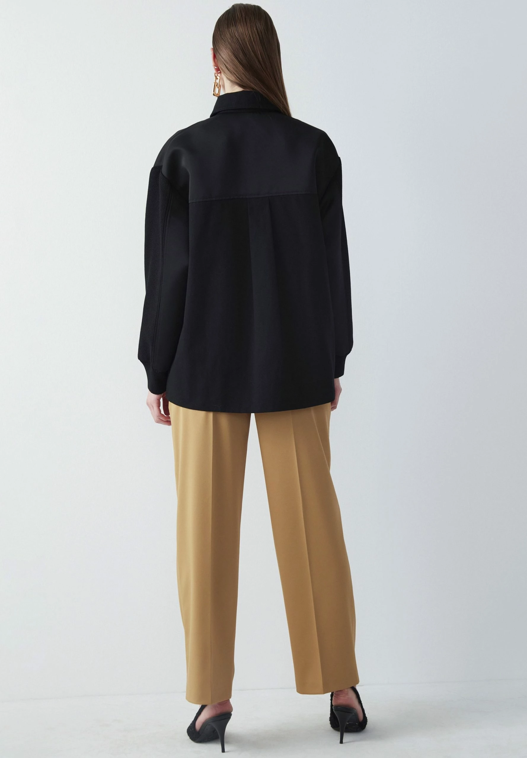 Ipekyol Oversize Technical Fabric And Knit Mix Coat – Halflange Jas – Black