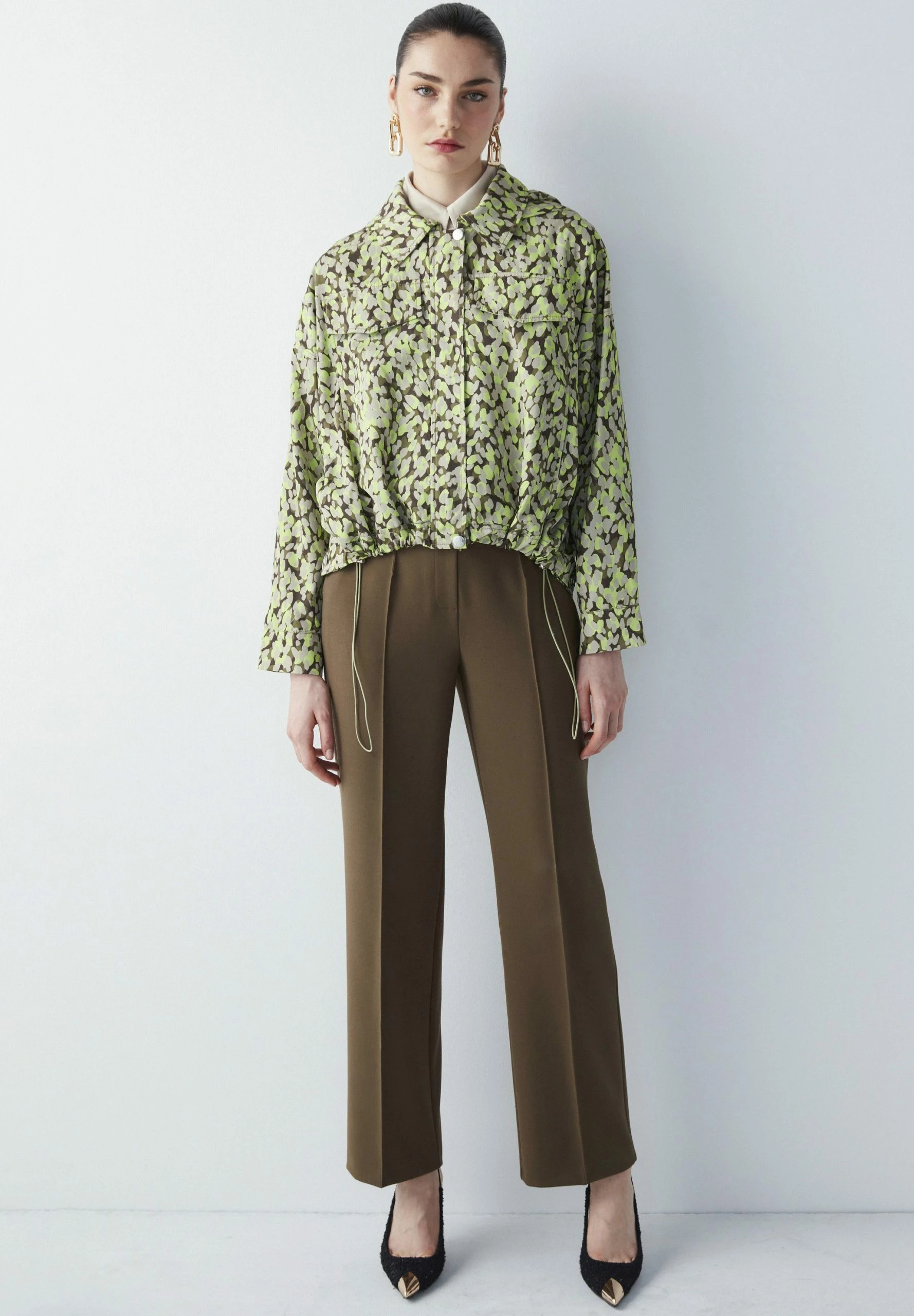 Ipekyol Relaxed Fit Patterned Adjustable Waist Coat – Lichte Jas – L Green