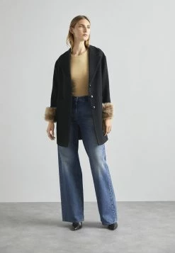 Madison Coat With Shearling Pockets – Mantel – Black/Honey