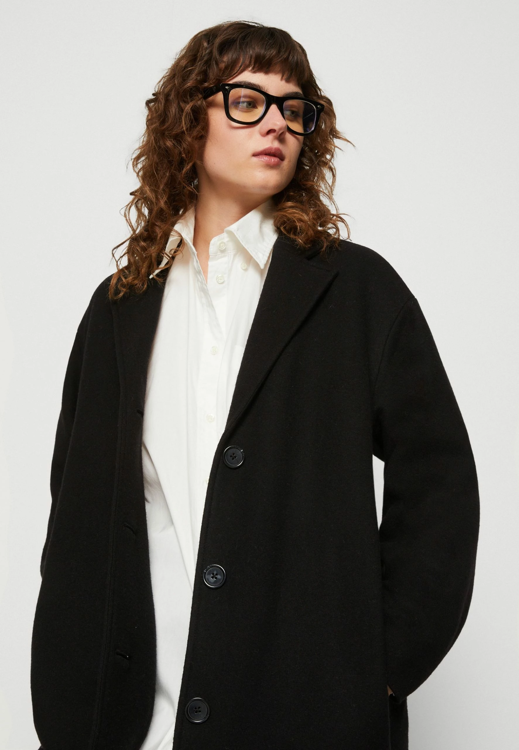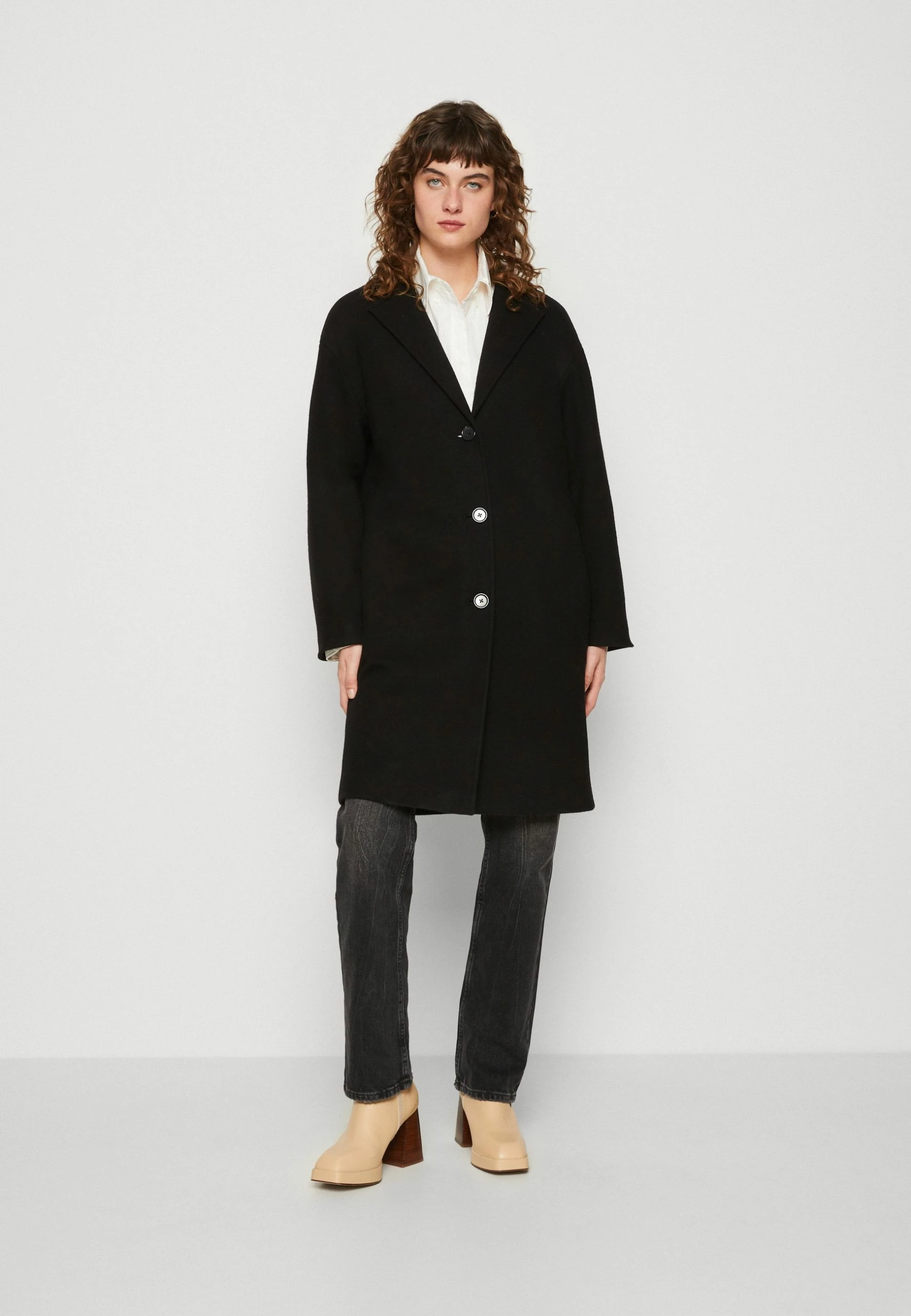 Marc O’Polo Coat Single Breasted Lapel Collar Half Lining – Mantel – Black